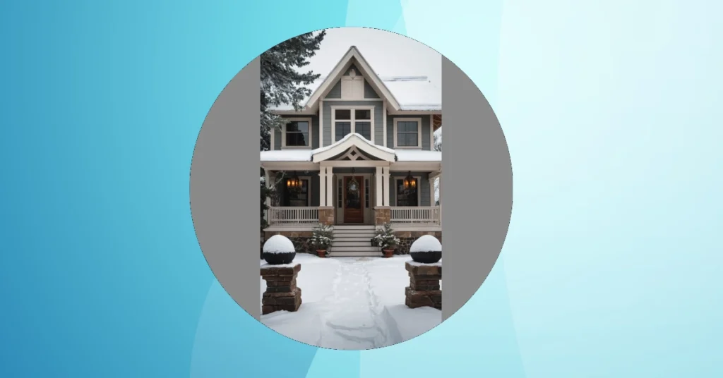 This house is seriously rocking the “winter house exterior” look! Imagine snuggling up inside with hot cocoa while the snow gently falls outside. It looks so peaceful and cozy, like a scene straight out of a holiday movie. I bet there’s a roaring fireplace inside, keeping everyone warm and toasty, while outside, the snow quietly blankets everything in a beautiful, fluffy layer. This is the perfect spot for snowball fights and building epic snowmen!
