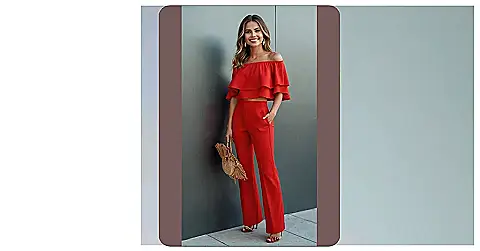 This lady is definitely turning heads in her head-to-toe red outfit! It’s like she’s channeling her inner superhero with a touch of “I’m-so-stylish-and-confident” attitude. The off-the-shoulder top with the ruffles is super cute and the matching pants give her a sleek look that’s both chic and comfortable. Maybe this is her secret weapon to take on the world, one fabulous outfit at a time!
