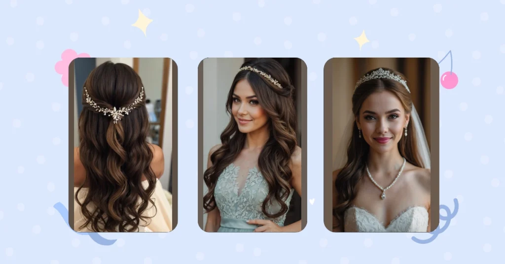 Let’s kick things off with the classic half up half down. This hairstyle is the best of both worlds: some hair up to keep your face fresh, and some hair down to let those gorgeous locks flow. You can keep it simple with a few soft curls or amp it up with intricate braids. This look works beautifully for all hair types, especially if you’re blessed with long hair. Don’t forget, a little teasing can add that extra oomph to make thin hair feel fuller and fabulous.