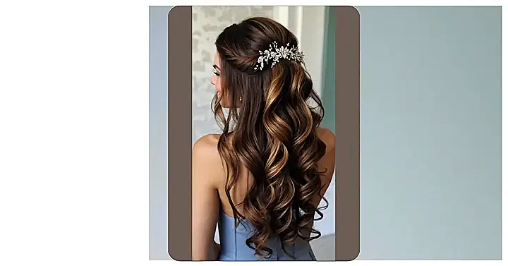 Planning a wedding can feel like studying for the hardest exam ever, but your hair shouldn’t add to the stress! Rocking long hair on your big day gives you so many fun options. You could go full-on princess with cascading curls, or try something a little more chill with braids. The best part is, you can even add some bling like the sparkly hairpiece in the picture to make it extra special!