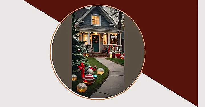 And get this—it’s not just the house itself that’s decked out! Look at all those giant, glowing ornaments lining the pathway. They’re like giant candy canes come to life, guiding you to a magical Christmas doorstep. It’s the kind of festive display that makes you want to grab hot cocoa, sing carols, and maybe even try to sneak a cookie (or two!) from that adorable gingerbread house.