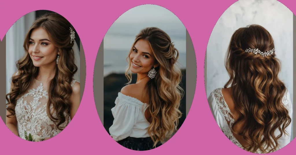 Let’s be real, getting ready for a wedding can sometimes feel like you need a whole team and maybe a map to navigate all the hairspray and Bobby pins. But finding a cute bridesmaid style that works, like these stunning waves that are half-up, half-down with a bit of sparkle, makes all the effort worthwhile. It’s the perfect combo for looking picture-perfect whether you’re standing up front looking angelic or later trying to discreetly eat a slice of cake while nobody’s watching. Basically, it’s the hair equivalent of being the supportive bestie who also happens to look fabulous.