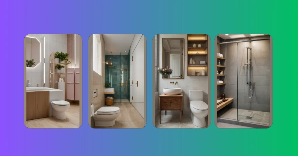 The pale pink tiles and gold accents create a calm, sophisticated vibe. It’s like stepping into a spa, but instead of paying a fortune for a massage, you’re just brushing your teeth! This design shows us that “small” doesn’t mean “boring”. It means we get to be super creative and make a space feel a million times bigger than it actually is – which is pretty magical, right?