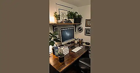 This room is seriously giving off “adulting achieved” vibes, but in the best way possible! Imagine having your own little corner of calm amidst the chaos of schoolwork. It’s not just a desk; it’s a mini-jungle meets study haven. All those plants are like tiny, green cheerleaders, rooting for you to ace your next test. Plus, that super sleek computer makes it look like you’re ready to conquer any assignment thrown your way (or maybe just binge-watch your favorite shows – no judgment here!).