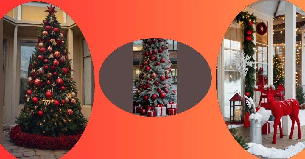 This Christmas tree is so decked out, it’s practically giving Santa Claus a run for his money! Look at all those ornaments – shiny red baubles, glittery gold swirls, and even some pine cones trying to get in on the action. It’s like a sparkly explosion of festive cheer, ready to make even the grumpiest Grinch crack a smile. It’s the kind of outdoor Christmas decorations that would make your neighbors jealous and your Instagram feed totally Insta-worthy!