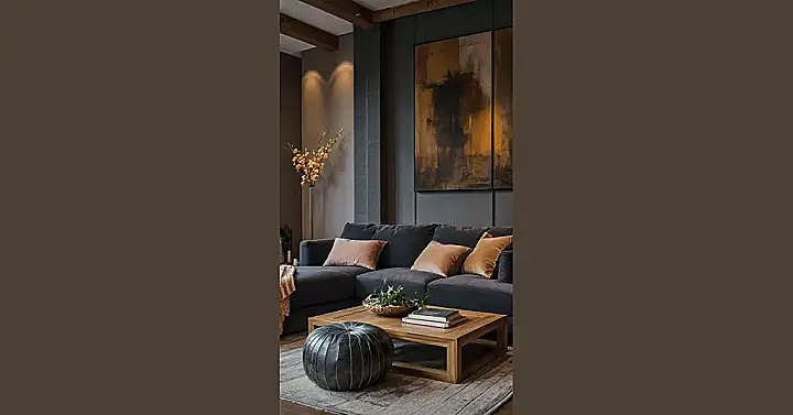 That artwork on the wall is pretty cool too. It’s the kind of thing that makes you think, “What does it all MEAN?” while you’re munching on popcorn. But honestly, you don’t even need to figure it out. It just makes the room look super fancy. Plus, that little plant on the table is like the room’s personal hype-man, reminding you that even when things feel a little gray, there’s always something green and growing!