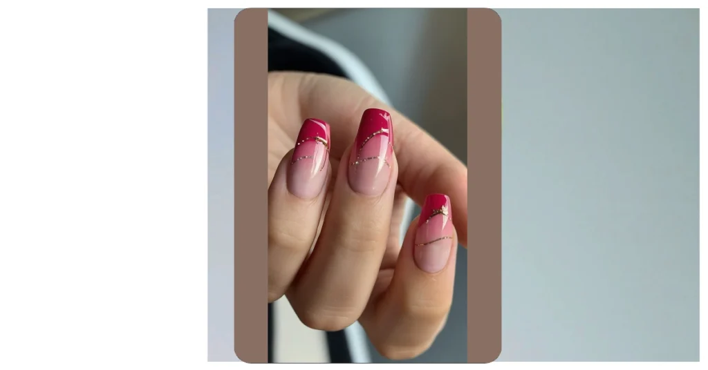 These simple acrylic nails are like a sunset you can carry around on your fingertips. They’ve got that cool ombre effect, fading from a light, airy pink to a bolder, brighter crimson. Plus, the gold detailing is like the sun setting in the horizon, scattering gold dust everywhere. Who knew your nails could be so artistic?