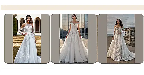 Check out the fancy details! The lace sleeves and flowery designs on the skirt make it extra special, and the little belt adds the perfect touch of sparkle. The bride looks like she’s ready to rock her big day and say “I do” in style. Who knows, maybe you’ll be the next one strutting down the aisle in a dress just like this!