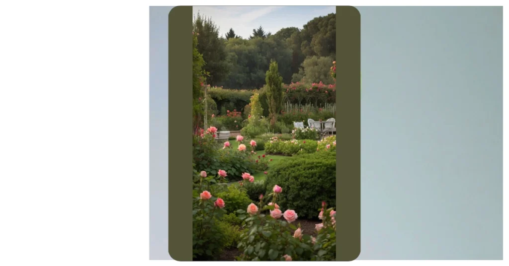 Now, imagine inviting your friends over for tea in a garden this pretty. Forget Instagram filters – this is real-life beauty! Designing a rose garden like this isn’t just about planting flowers; it’s about creating a whole vibe. The bushes, the trees in the background, even the furniture looks like it’s straight out of a fairy tale. Just be warned, your neighbors might start peeking over the fence, totally jealous of your blossoming masterpiece!