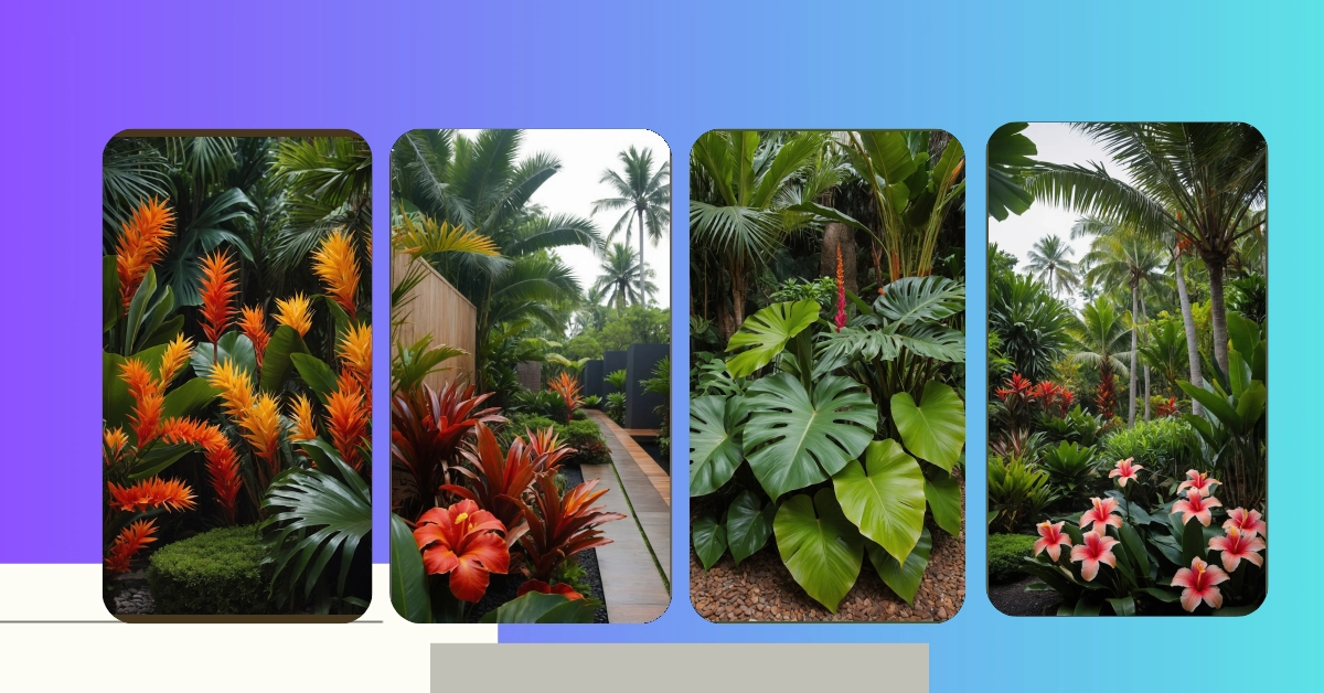 And let’s not forget the big players! Those tall, leafy palm trees are the chill giants overseeing the whole scene, probably sharing secrets about the best sunbathing spots. Planting tropical beauties like these is like giving your outdoor space a major upgrade, turning it into a mini-vacation spot. They’re not just plants; they’re living, breathing mood boosters that make you want to grab a smoothie and pretend you’re somewhere exotic, even if you’re just doing homework nearby.