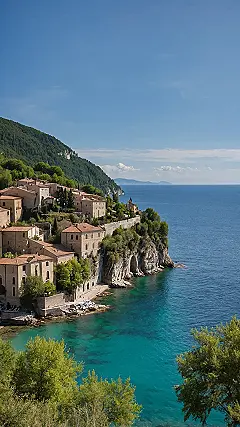 Whoa, check out this place! It’s like nature decided to go all out with the ‘epic views’ button. You’ve got this huge hill absolutely covered in green trees, then suddenly, boom! Dramatic cliffs drop straight down into water that looks so unbelievably blue and clear you could probably see your own goofy reflection. This is the kind of show-off nature Europe does best, serving up jaw-dropping spots that make your phone background look kinda sad in comparison.
