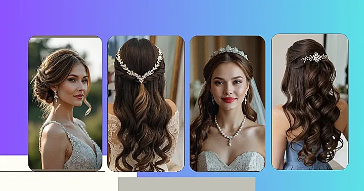 Seriously, this hairstyle is giving us all the feels. It’s not just about the curls and the pins; it’s about that confident, ready-to-say-yes vibe. Half-up and half-down? More like 100% perfect! It’s proof that you don’t need a crazy complicated updo to look totally elegant on your big day. This style is the ultimate “I do” to looking effortlessly stunning.