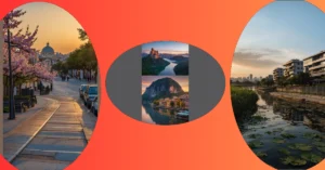 This picture makes you want to drop everything and hike, right? It’s like nature decided to show off all its best features at once: gigantic, snow-capped mountains in the background, lush green trees like a never-ending forest carpet, and fields so green they practically glow. It’s basically what happens when you accidentally set your computer’s wallpaper to “extreme beauty mode.” I wonder if there’s a hidden gnome village somewhere in those hills!