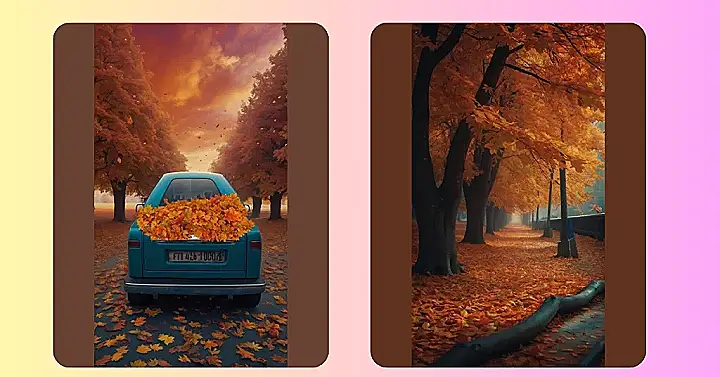 This picture is like a warm hug on a crisp autumn day. It’s got all the best things about fall: the colorful leaves, the pumpkin, and a hint of mystery. It’s like a little peek into a storybook where all the trees turn gold and orange and the pumpkins are just waiting to be carved into spooky faces for Halloween.