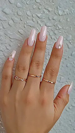 So, spring is here and it’s time to ditch the winter blues for some fun nail art! These nails are giving off serious “fairytale princess who gardens” vibes. The light pink color is super pretty and subtle, but those little gold details add just the right amount of sparkle, like tiny flower petals caught on your fingernails!