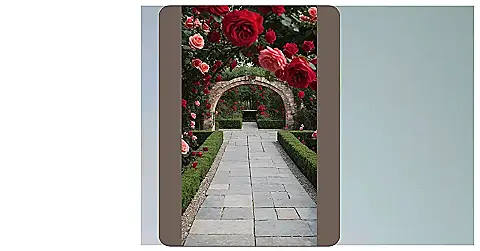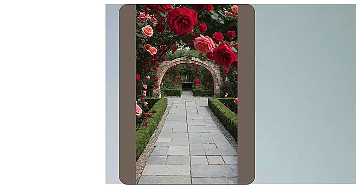 Stepping onto this path feels like you just stumbled into a secret level in a video game, except instead of collecting coins, you’re surrounded by ridiculously beautiful roses everywhere. Seriously, there are so many red and pink roses hanging down, it’s like they’re trying to give you a flowery high-five as you walk by. The little archway covered in even more roses looks like a fancy portal, probably leading to a dimension where everything smells amazing and nobody ever has homework. Just watch out, I’m pretty sure some of those giant blooms have been plotting world domination via extreme prettiness.