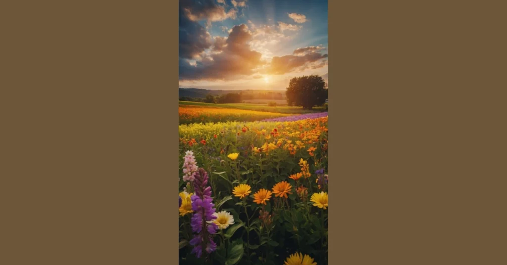 Seriously, this flower field is so good, it makes you wanna grab your camera and become a flower-whispering photographer, too. Forget the grumpy art critics, just imagine taking pics of these little guys all day while the sun sets! Plus, the sunset is kind of showing off – talk about photo-bombing the flower party!