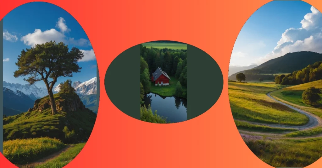 This picture looks like the perfect place to escape from the craziness of everyday life. It’s a charming little red house, nestled peacefully in a forest with a glassy pond reflecting the trees like a mirror. Imagine sitting on the porch swing, listening to the birds chirping and the wind whispering through the leaves. You could almost forget about your homework, right?