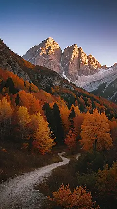 And can we talk about those leaves? It’s like a giant nature-made carpet, all warm and inviting. You can almost feel the soft rustle under your feet as you wander along the path, surrounded by the vibrant colors of fall. This is the kind of autumn landscape that makes you want to grab a warm drink, snuggle up in a blanket, and just breathe it all in.