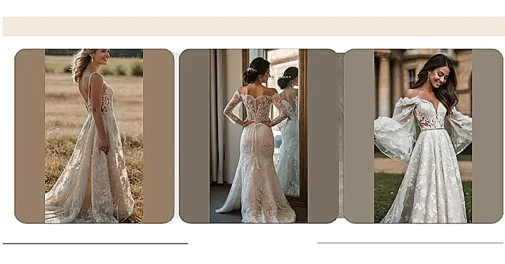 Forget about those stuffy old-fashioned dresses your grandma wore. This dress is all about being comfy, cute, and a little bit wild! Imagine twirling around, feeling the breeze, and looking absolutely amazing. Plus, think of all the cool wedding photos you can take, leaning against fences like this model, or maybe even riding a horse (if you’re brave!). Just try not to spill any red wine on that beautiful lace before saying “I do!”