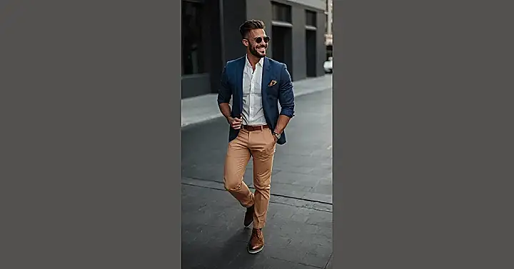 This guy’s outfit is so perfect, it’s practically a textbook example of “perfect gentleman outfits”! He’s rocking a navy blazer, a crisp white shirt, and some seriously stylish khaki pants. The whole look is super sharp, but still relaxed enough that he doesn’t look like he’s trying too hard. It’s like he just effortlessly threw this together, and somehow managed to look like he walked straight off a magazine cover. Those brown shoes are the cherry on top! He’s ready for anything – a date, a job interview, or even just hanging out with friends. This outfit is proof that looking good doesn’t have to be complicated.