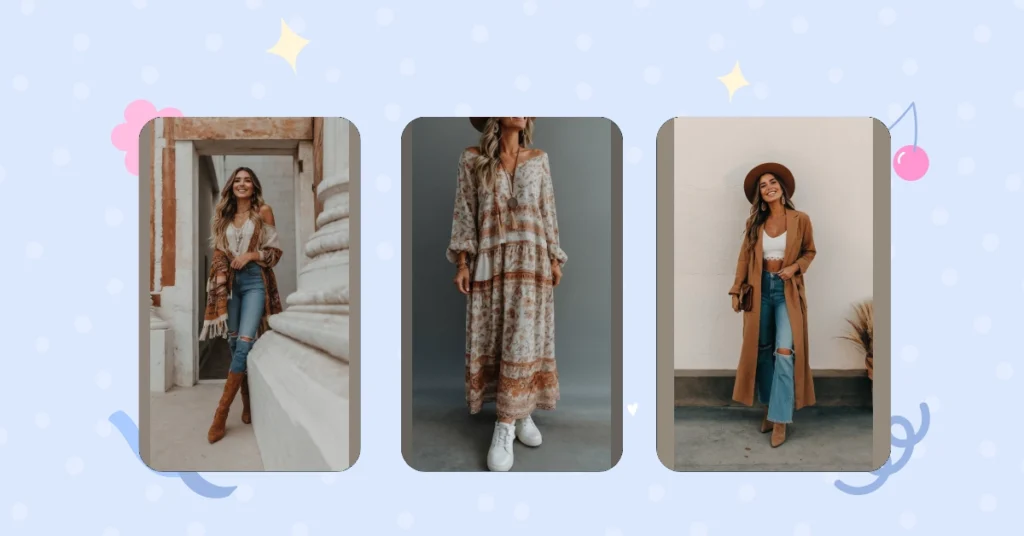 Texture is your best friend as the temperatures drop. As we discuss these bohemian outfits, we’ll be focusing on what makes each piece special—think crochet cardigans layered over cute patterned skirts or stunning long skirts paired with chunky knits. It’s all about adding those witchy, edgy elements while feeling like the beautiful, confident woman you are. Mix and match to your heart’s content, and let’s create awe-inspiring styles!
