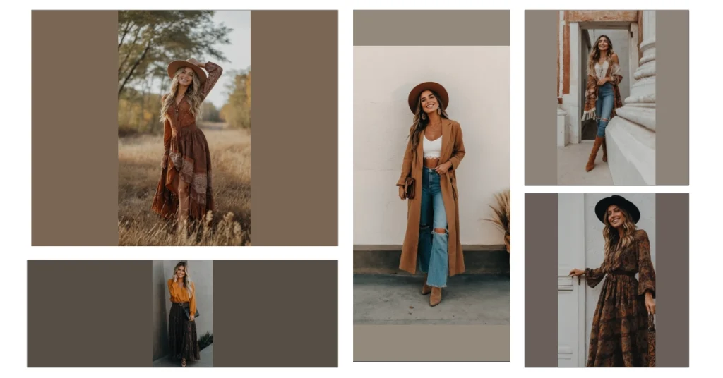 This outfit is the perfect example of how to look stylish and comfy at the same time. It’s like a warm hug in clothing form. You could totally wear it to a pumpkin patch or a football game, and you’d be the best-dressed person there (sorry, not sorry, football fans!). And if you’re feeling extra bold, add a wide-brimmed hat and some statement earrings. You’ll be turning heads everywhere you go, and maybe even inspiring other people to embrace their inner boho goddess.