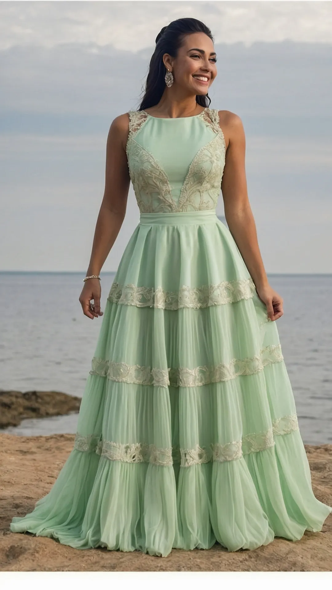 This dress is like a breath of fresh air! It’s so light and airy, you’ll feel like you’re floating on a cloud. The soft mint green color is perfect for spring or summer, and the flowing fabric makes it perfect for twirling and dancing. Imagine yourself walking along the beach in this dress, feeling the cool sea breeze on your skin – you’d be the coolest chick on the beach!