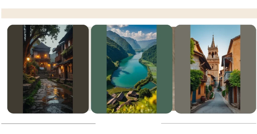 This place looks so peaceful and quiet; I bet the air smells like pine trees and fresh water. No noisy cars or busy streets here – just the sound of birds singing and the gentle whisper of the wind through the trees. I bet you could spend hours exploring the riverbanks, taking amazing photos of the incredible scenery, and maybe even spotting some cool wildlife. It’s seriously the kind of beautiful villages nature photo that makes you wish you could just teleport there instantly!
