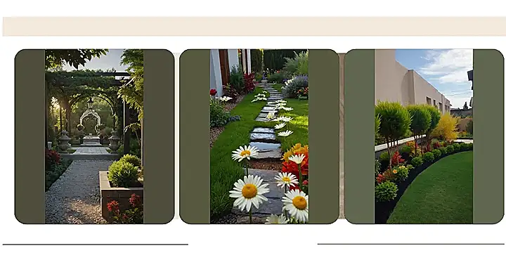 This garden is so pretty, it looks like it belongs in a fairytale! Imagine yourself taking a stroll down that winding path. It’s like a secret passage leading to a magical place. On either side, there are flowers of every color, from bright reds and pinks to delicate whites and yellows. The whole scene is so peaceful, you can almost hear the birds singing and the bees buzzing.