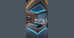 This bedroom is seriously chill, like a spa day for your room! See that super-comfy bed? It’s all about those calming neutral tones – think beige and grey – and fluffy pillows that scream “nap time!” The artwork’s a bit abstract, but hey, who needs a photo of a cat when you can have a cool swirl of grey and white? The whole thing proves that simple room decor ideas for bedrooms don’t have to be boring – even grade 9 you can rock this look!