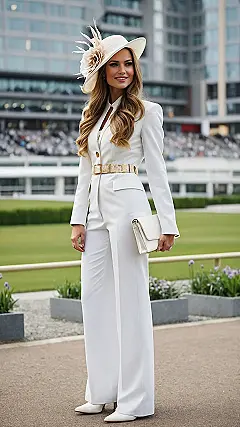 Getting ready for the derby is basically like playing dress-up, but way fancier and with way bigger, sometimes wilder, hats. Forget jeans and a hoodie; derby outfits for women are all about showing up looking polished and ready for anything, maybe even a sudden gust of wind threatening to steal your fabulous headwear. This lady in the picture totally nailed it with her super sharp white pantsuit. It’s a total power move outfit, saying “Yes, I know I look amazing, and I might also know which horse is going to win.”