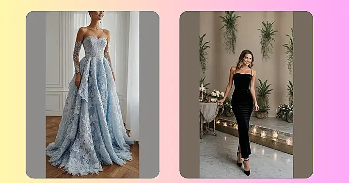 Getting ready for a big night out calls for something special, like a show-stopping evening party dress that’s super classy. This deep black velvet one in the picture is exactly that! It hugs in all the right places and makes you feel like a million bucks even before you get to the party. Plus, pairing it with some killer heels and a big smile? You’re pretty much guaranteed to have an epic time and maybe even forget about that awkward thing that happened in science class today.