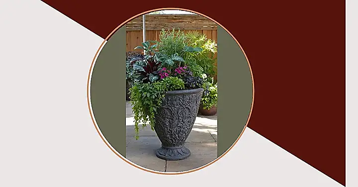 The plants packed into this awesome planter are like the rock stars of the shady spots! While other plants are stressing about getting enough sun, these guys are totally chilling, enjoying the cooler, relaxed life out of the direct glare. See those deep purple leaves and vibrant pink and red flowers? They’re putting on a whole show without needing a single tanning session. They prove that you don’t need to be a sun worshipper to be the star of the garden party; sometimes, the coolest place to be is definitely in the shade!