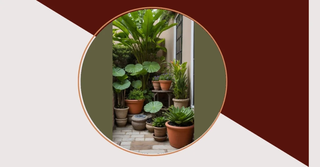 Step into this little spot and boom, you’re basically in an Italian courtyard garden! These plants clearly didn’t get the memo about personal space, they’re all buddies crammed together in their terracotta pots like they’re posing for the ultimate group photo. Check out those massive green leaves, big enough to use as emergency rain gear or maybe even pretend you’re a giant trying to fan yourself. It’s like a tiny, awesome jungle packed into a cozy corner, probably smells way better than gym socks.