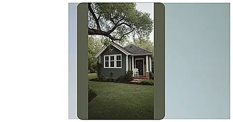 This charming little cottage house is like something out of a fairytale, with its cute little porch and white-trimmed windows. It almost looks like a dollhouse! Just imagine sitting on that porch swing, sipping lemonade and listening to the birds chirping. The tree hanging over the roof adds a touch of magic, like something out of a storybook. You can almost hear the whispers of the wind rustling through the leaves!