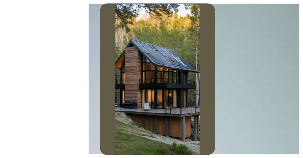 Seriously, who needs a castle when you can have this? The dark exterior is super sophisticated, the wooden accents add a warm touch, and those massive windows? They’re practically begging you to come inside and binge-watch your favorite shows while enjoying the incredible view. Plus, picture yourself strolling up those stylish steps after a long hike. This isn’t just a house; it’s your own personal escape to nature’s awesome playground. Start dreaming of that cabin life now!