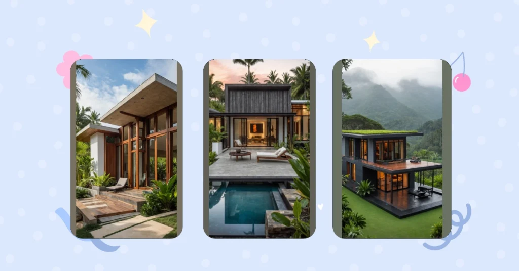 This little tropical house design looks pretty sweet, right? It’s like, you don’t need a giant mansion to have your own personal paradise. Look at that pool! It might not be Olympic-sized, but who cares? It’s perfect for escaping the heat and maybe pretending you’re on a super fancy vacation, even if you just finished cleaning your room. Plus, check out those huge banana leaves! It’s like a jungle in your backyard, but way less likely to have actual bugs trying to eat you.