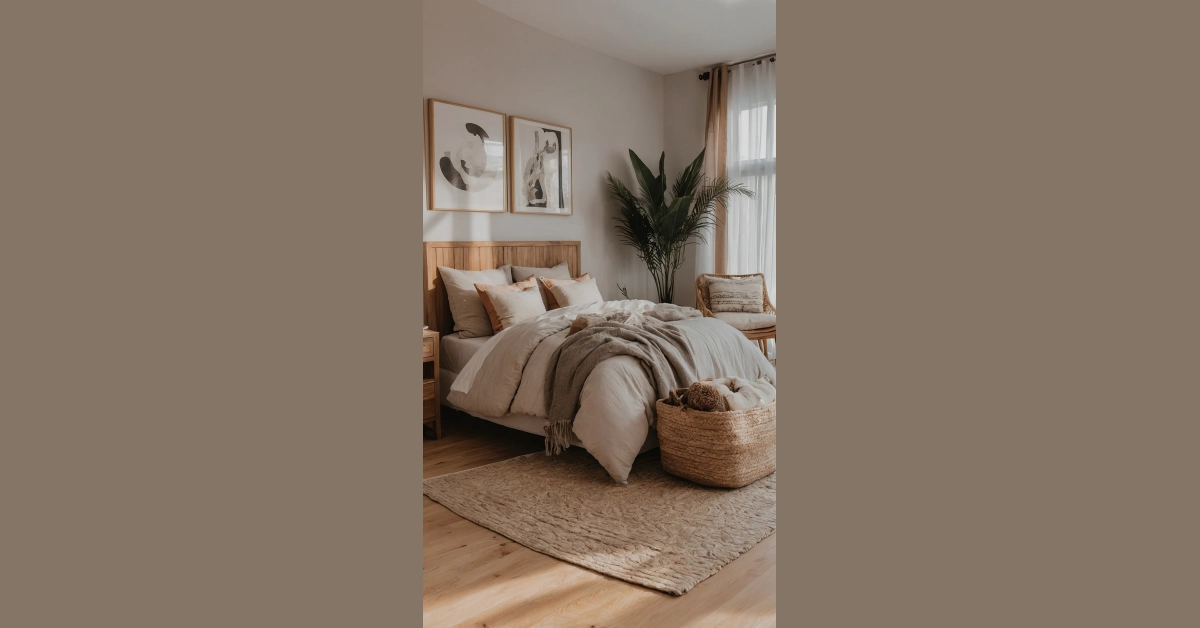 Look at that happy plant chilling by the window, soaking up the sun like it’s on vacation. Even the plants look relaxed! All the earthy colors and soft textures just wrap you up in a giant hug. This isn’t just decor; it’s basically a professional relaxation chamber disguised as a bedroom. It makes you want to grab a blanket, maybe a hot chocolate, and just exist peacefully until further notice. Homework definitely doesn’t stand a chance against this level of cozy power.