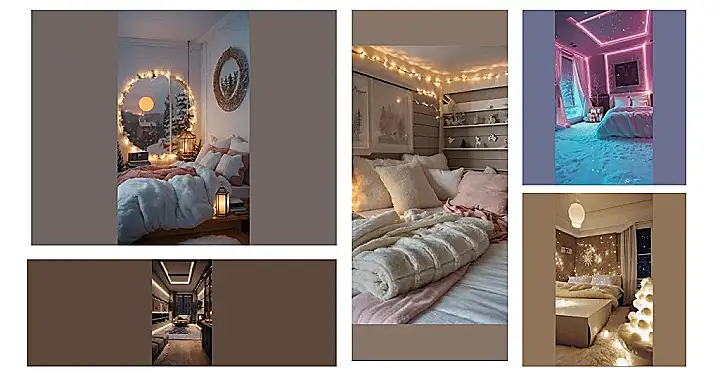 Forget building a snowman outside – this bedroom is where the real winter magic happens! Just imagine: It’s snowing *inside* (don’t worry, it’s just cleverly-lit fake snow!), the walls are glowing a dreamy pink and purple, and you’re snuggled under the covers of your super-comfy bed. There’s even a little snowy tree and some cozy candles adding to the festive vibes. It’s like a Pinterest board came to life, and it’s way cooler than anything you’d find in a regular old catalogue. This room is definitely on my list of “places I’d like to hibernate all winter.”