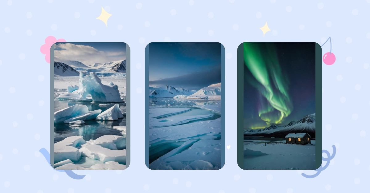 Feeling adventurous? Let’s take these Arctic ideas and cross them with some modern digital design or concept art! You can create vibrant wallpaper designs that capture the beauty and magic of the Arctic – just think of all the cool themes you can explore: peaceful nights illuminated by stars or dazzling ice caves filled with fantastical creatures.