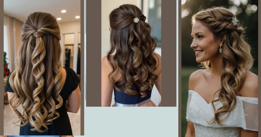 This hairstyle is seriously gorgeous! Imagine yourself as a bridesmaid, looking like a total princess with these luscious, curled locks. It’s the perfect blend of fancy and fun—elegant enough for a wedding, but relaxed enough that you can still dance the night away without worrying about your hair falling apart. Plus, that little sparkly hair clip? It’s the cherry on top of a seriously amazing sundae!