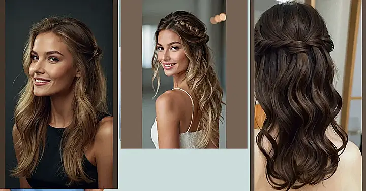 This hairstyle is like a fairytale come to life! Imagine a princess, but instead of a crown, she’s got a super cute braided headband. The rest of her hair is these amazing, loose waves—totally beachy and effortless. It’s the perfect mix of fancy and fun, like when you dress up for a party but still want to feel comfortable and ready to dance!