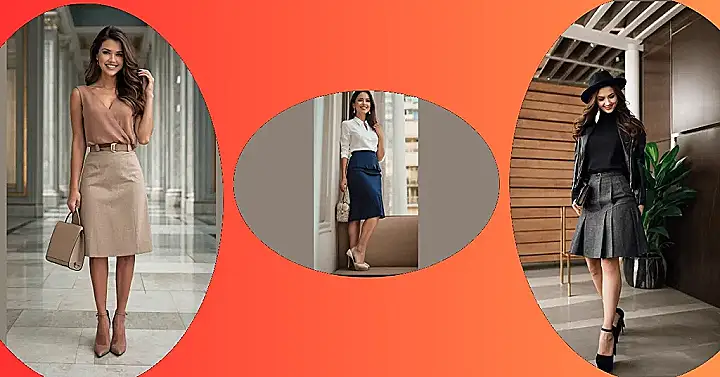 This outfit is like a breath of fresh air! The woman in the picture is rocking a gray skirt and an orange top. It’s like she’s ready for a fancy party or a casual day out. The pop of color from the orange top is like a burst of sunshine, and the grey skirt is classic and chic. She’s got a little bit of everything, making her look like the coolest person in the room!