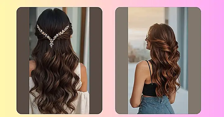 Think big, beautiful waves that just scream “I’m ready to party!” And since it’s a half-up, half-down style, you can easily switch it up to create something totally unique. You can add a fancy hair clip, some cute braids, or even a fun headband to make it even more you. Get ready to turn heads at the dance!