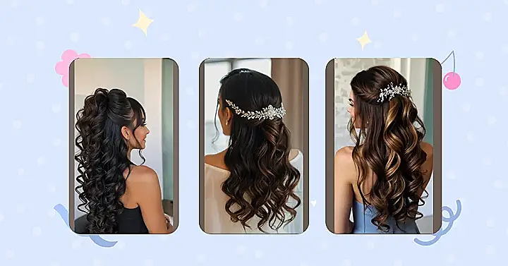 Planning a wedding? Then you know that picking the right hairstyle is almost as important as finding the perfect dress! This look is like saying, “Yeah, I woke up like this… ready to say ‘I do!'” It’s got that fancy updo thing happening in the back, but with pretty, loose waves hanging down, so you can still totally rock out on the dance floor later. Plus, that little sparkly headband? Chef’s kiss!