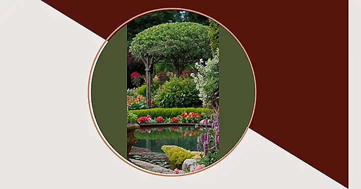 This picture is like stepping into a fairytale! Imagine a peaceful pond, perfectly reflecting the vibrant colours of the flowers all around it. It’s like the garden itself is dreaming, with a giant, fluffy green tree acting as a watchful guardian over a rainbow of blossoms. This is what dreams are made of – a totally chill spot to relax and maybe even spot a friendly frog taking a dip.