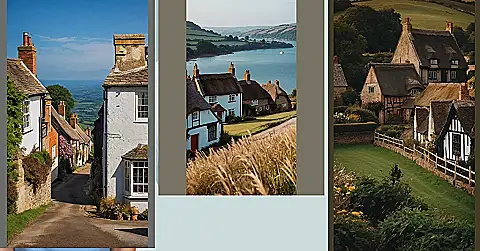 Imagine waking up to the gentle sound of birdsong, the smell of fresh-baked bread wafting from a nearby bakery, and the sight of a quaint little cottage with a thatched roof. This picture is like a postcard from a dream, showing an English village that seems straight out of a fairy tale. The whitewashed houses with their thatched roofs are tucked away on a hillside overlooking a shimmering river. You can almost hear the happy chatter of villagers as they stroll along the cobblestone paths, and imagine yourself sipping a cup of tea in a cozy pub by the fire.