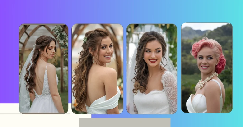 Let’s not forget about those with medium-length layered hair—it’s the Goldilocks of hairstyles! Not too short, not too long, but just right for a versatile updo for the bride wanting to showcase her unique flair. Medium length can be styled into elegant waves, half-up-half-down looks, or even intricate braided masterpieces that make everyone say “wow!” during the ceremony.