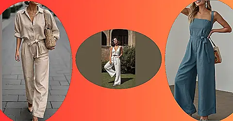 Forget squeezing into stiff jeans on a warm day, because this blue linen jumpsuit is basically wearing air conditioning! Those wide legs look so breezy and comfy, you could probably do cartwheels or just lounge like a fashion expert. The little belt makes sure you still have a shape, so you’re not just rocking a fancy potato sack. It’s got that effortless “I woke up like this and just threw on perfection” kind of energy, making you look super cool without even trying.